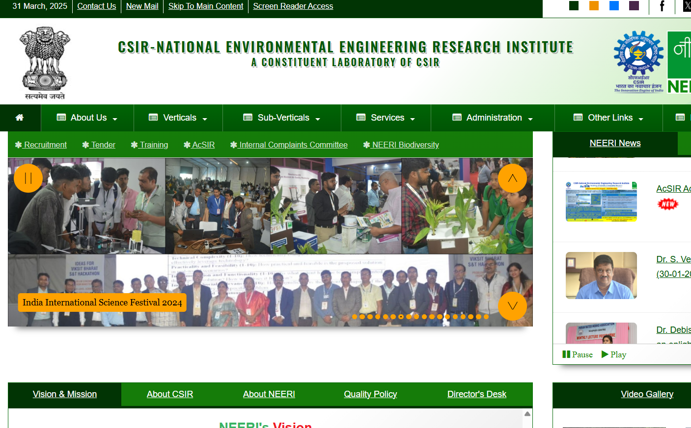 CSIR-National Environmental Engineering Research Institute (CSIR-NEERI), with its headquarters at Nagpur (Maharashtra) and having five Zonal Centres at Delhi, Mumbai, Chennai, Kolkata and Hyderabad, is one of the constituent laboratory of Council of Scientific & Industrial Research (CSIR), a premier Multi-Disciplinary R&D organization in India which is an autonomous body of the Department of Scientific & Industrial Research (DSIR) under the Ministry of Science & Technology, Government of India.